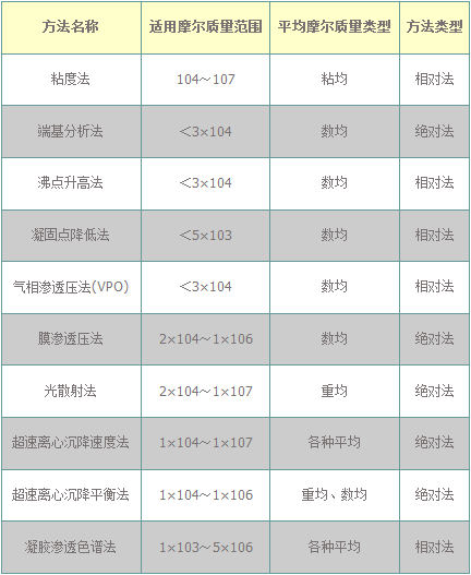 高聚物摩爾質量不僅反映了高聚物分子的大小,而且直接關系到它的物理性能,是個重要的基本參數。與一般的無機物或低分子的有機物不同,高聚物多是摩爾質量大小不同的大分子混合物,所以通常所測高聚物摩爾質量是一個統計平均值。